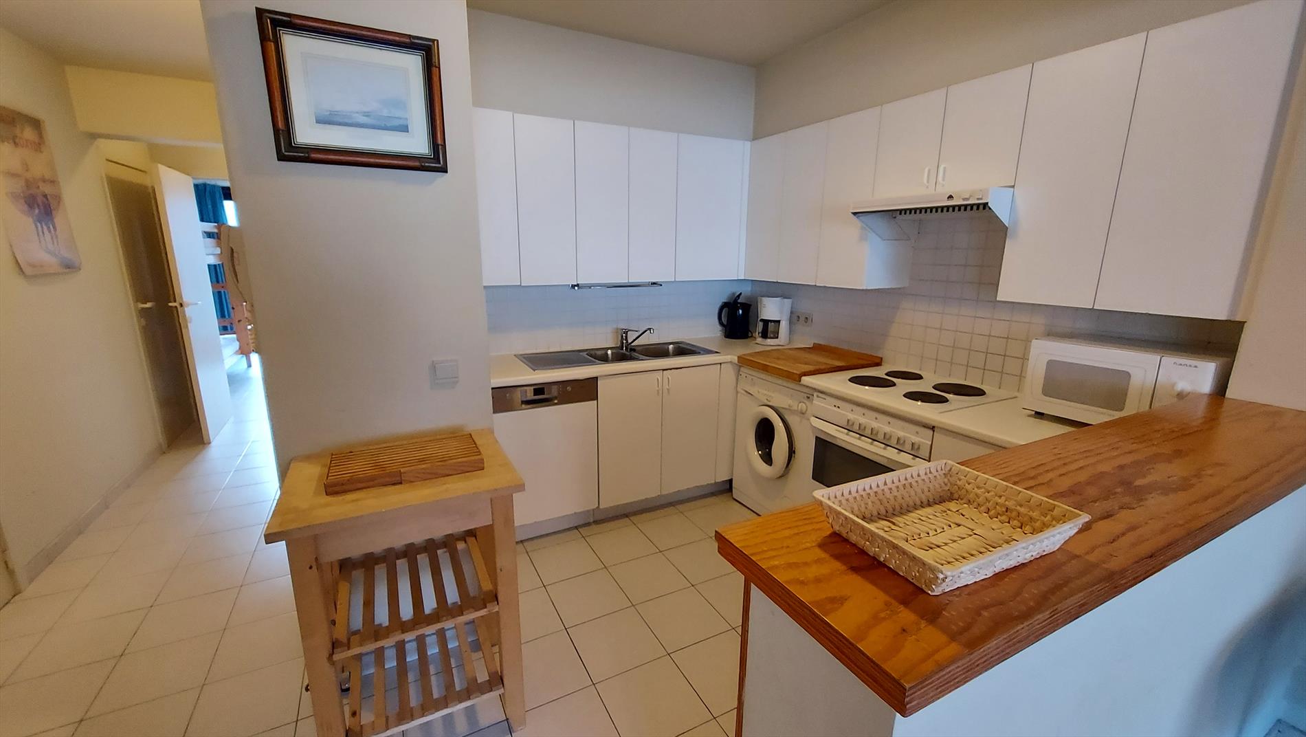 Appartement très spacieux avec 4 chambres et vue sur mer latérale. Salon avec flatscreen et digibox et WIFI. Grand terrasse devant et derrière. Il y à 3 chambres avec un double lit, et 1 chambre avec des lits supperposées. Deux salles de bains avec baignoire et lavabo. Toilette séparée. Cuisine avec lave vaisselle, four, micro-onde, machine à laver et lessiver. Débarras commun pour les vélos. Animaux domestiques interdits.