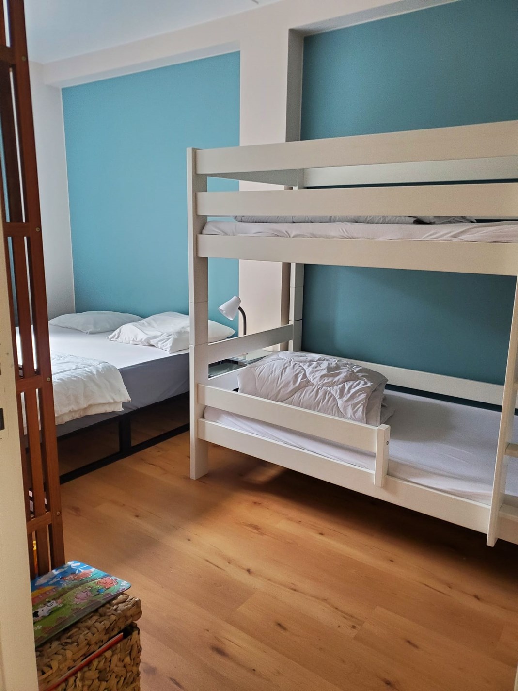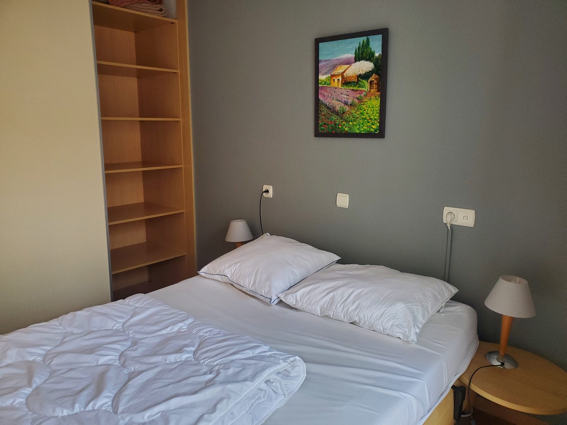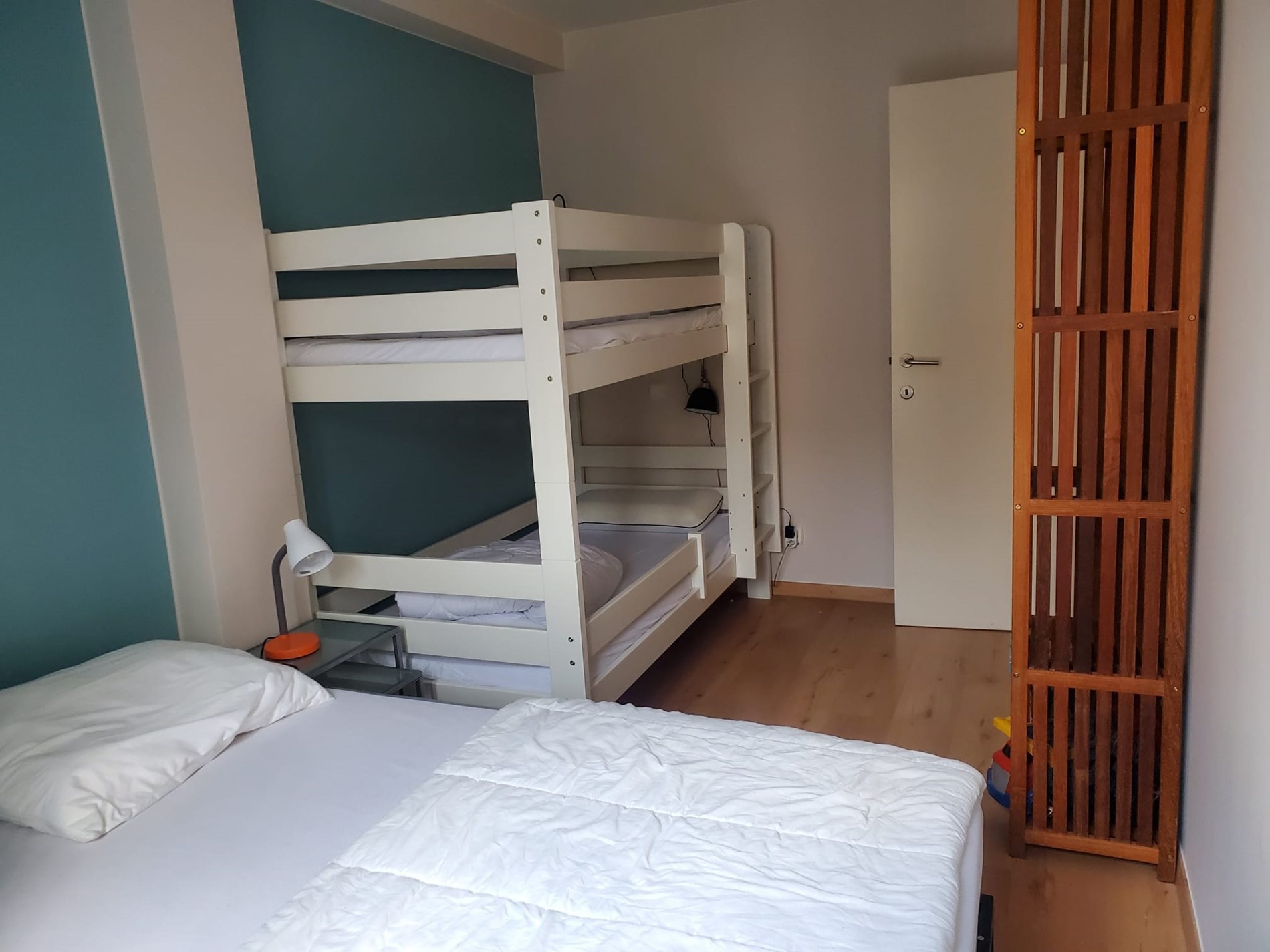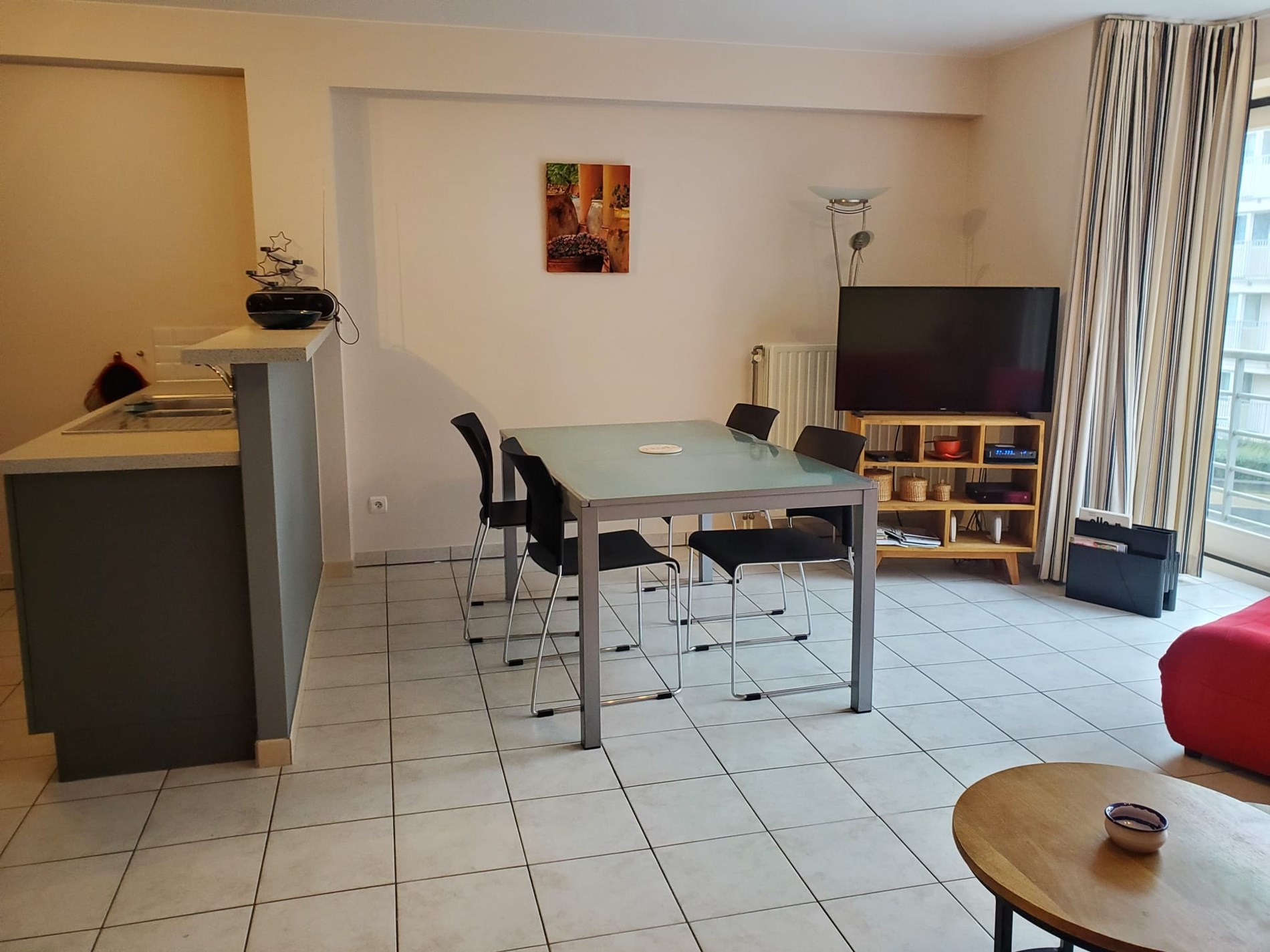 Appartement récent avec belle vue latérale sur la mer et 2 chambres à coucher: une avec lit double et une avec lit double et deux lits superposés. Living avec t.v. couleur avec digibox, cuisine avec four et micro-onde, salle de bains avecbaignoire et lavabo, toilette séparée. Chauffage central au gaz individuel. 2ième étageavec ascenseur. Parking privé extérieur inclus. Fumeurs et animaux domestiques INTERDITS. A 50 m. de la digue. Internet Wifi