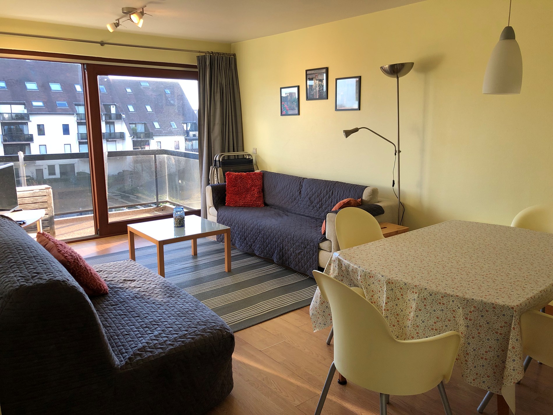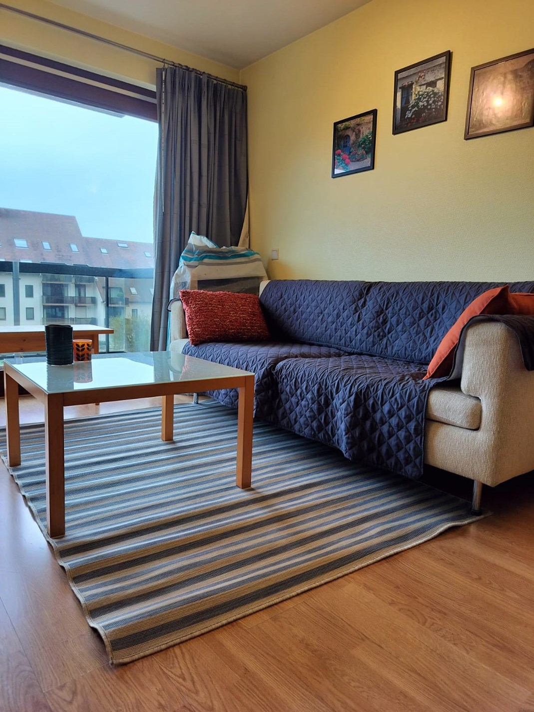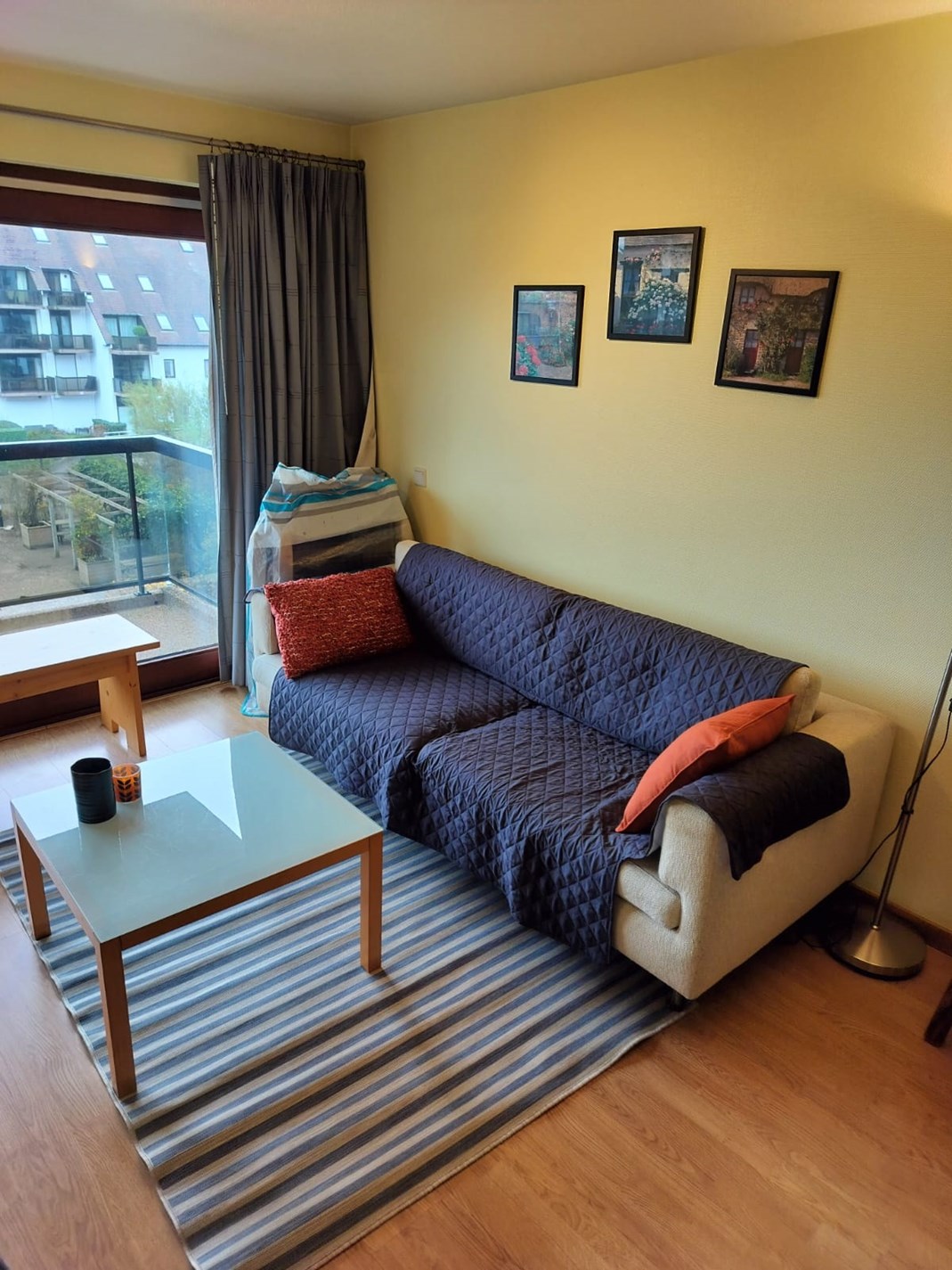 Appartement moderne et ensoleillé, living avec divan-lit pour 2 personnes, télévision couleur avec