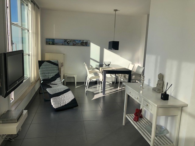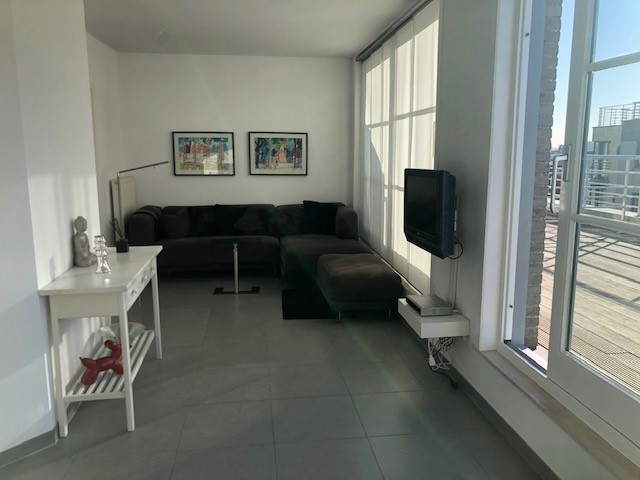 Bel penthouse moderne d'une chambre , situé à 50 mètres de la digue. Deux terrasses spacieuses, 1 avec une vue dégagée sur mer, living avec TV à écran plat, digibox, cuisine moderne avec lave-vaisselle et micro-ondes, chambre à coucher avec lit double, salle de bains avec douche et double lavabo, toilette séparée, mobilier de jardin, chauffage central au gaz, 4ème étage avec ascenseur, place de parking incluse. Local à vélos commun. Les animaux domestiques ne sont pas autorisés. WIFI gratuit.