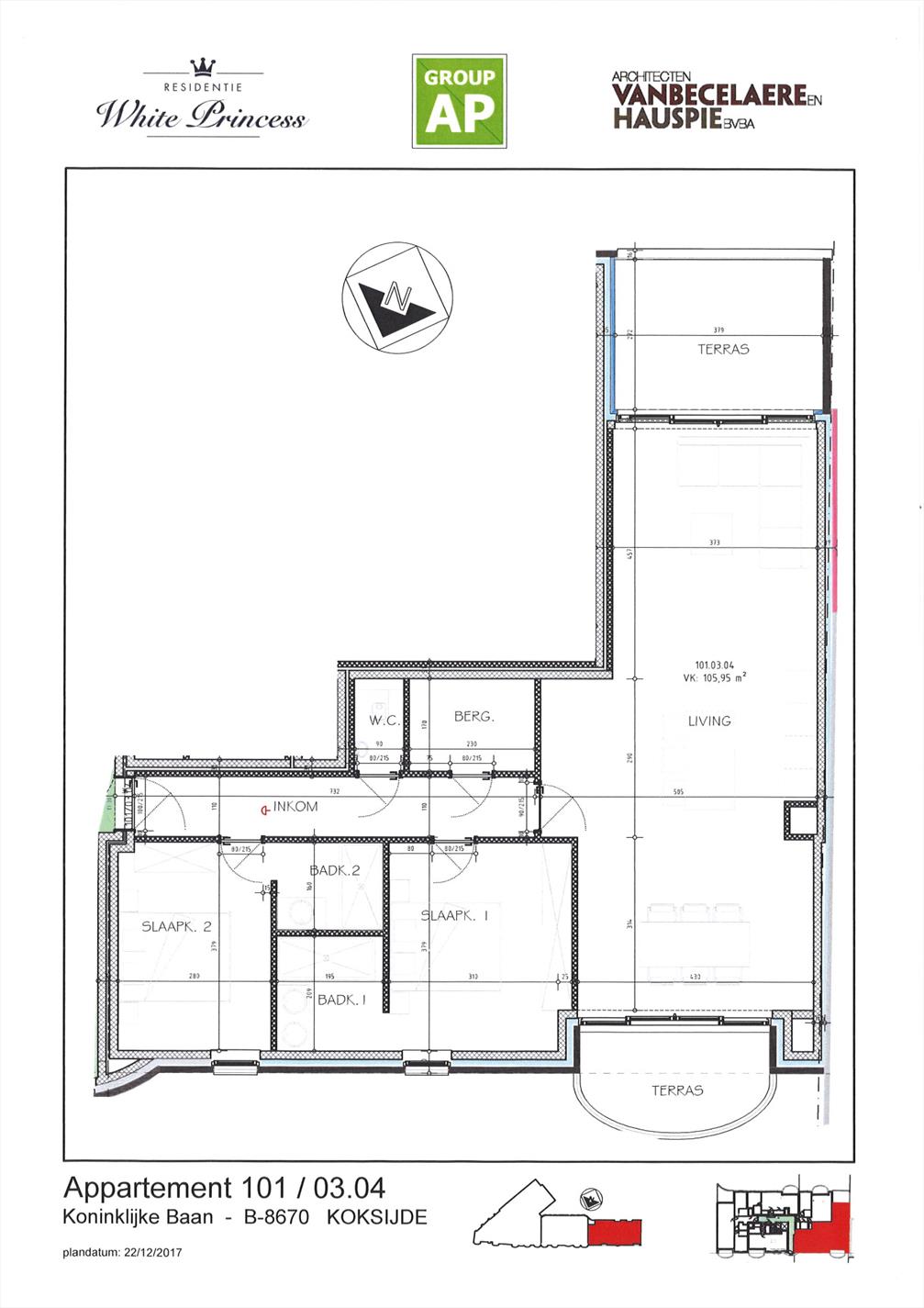 Cet appartement se compose d'un living très spacieux avec cuisine ouverte et moderne, 2 chambres à coucher, 2 salles de bains avec douche, débarras spacieux et toilette séparée. Du living il y a accès vers les 2 terrasses; 1 orientée Sud et 1 orientée Nord. De cette manière vous pouvez profiter du soleil du matin au soir. Venez visiter nos appartements témoins! Vente sous la loi Breyne, début travaux prévu pour Pâques 2018, livraison prévu pour Pâques 2020. un Paquet cadeau très attrayant et intéressant est offert par le promoteur aux acheteurs des premiers 10 appartements !!