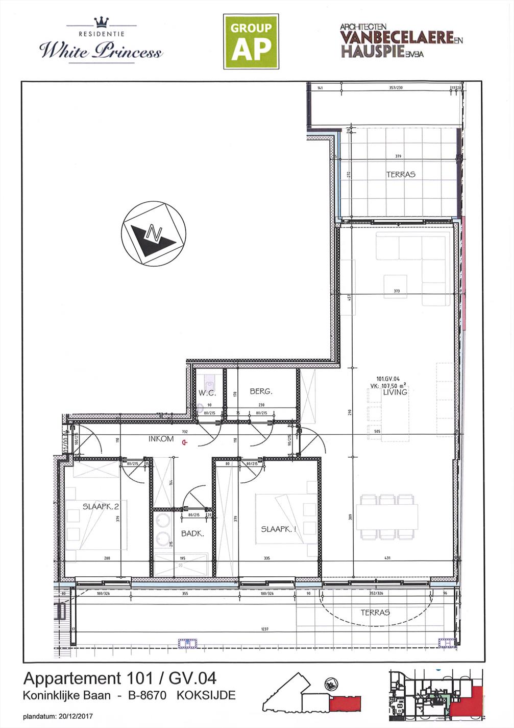 Cet appartement se compose d'un living très spacieux avec cuisine ouverte et moderne, 2 chambres à coucher, salle de bains avec douche, débarras spacieux et toilette séparée. Du living il y a accès vers les 2 terrasses; 1 orientée Sud et 1 orientée Nord. De cette manière vous pouvez profiter du soleil du matin au soir. Venez visiter nos appartements témoins! Vente sous la loi Breyne, début travaux prévu pour Pâques 2018, livraison prévu pour Pâques 2020. un Paquet cadeau très attrayant et intéressant est offert par le promoteur aux acheteurs des premiers 10 appartements !!