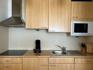 Indeling: Er is een dubbel uitklapbed in de living en een uitklap stapelbed in de inkomhall. Verder is de studio voorzien van open keuken met gasfornuis, dampkap en microgolf.