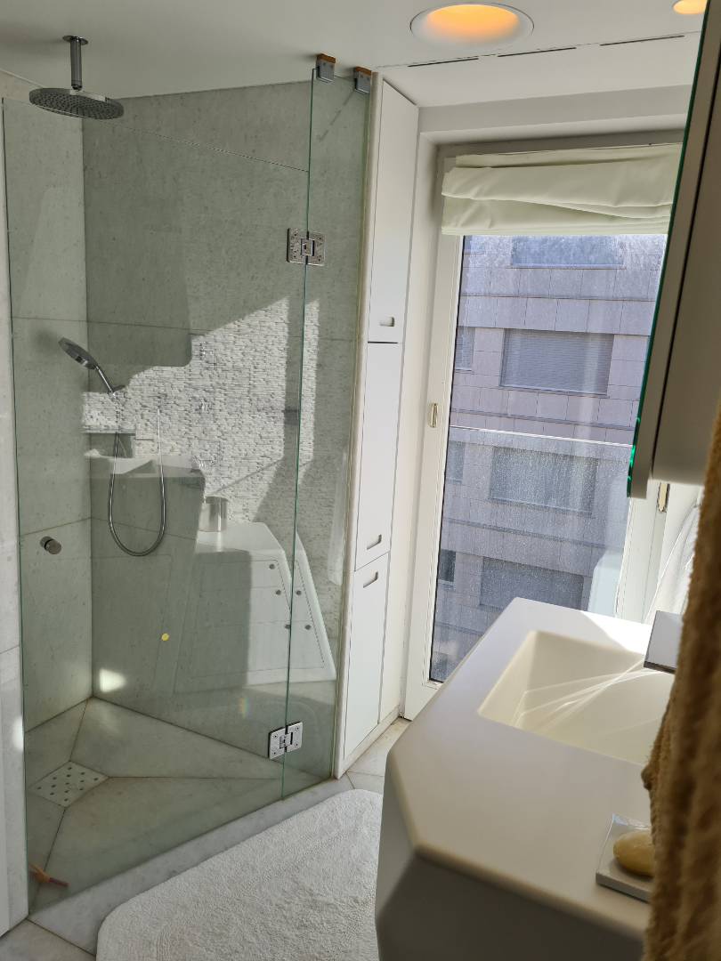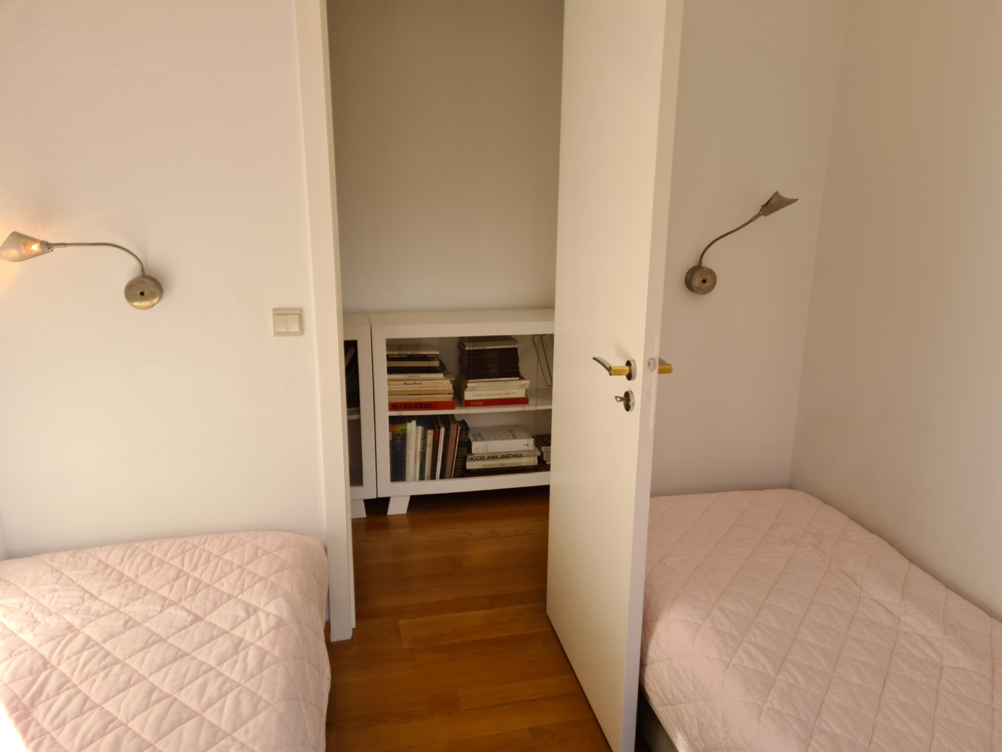 Dit appartement bestaat uit een grote leefruimte met open volledig geïnstalleerde keuken , nachthal , 2 slaapkamers , badkamer met inloopdouche , apart toilet .