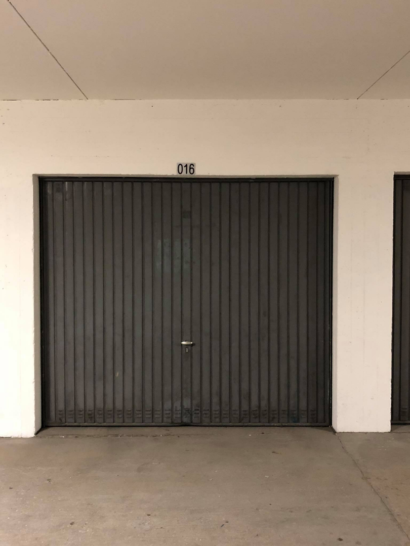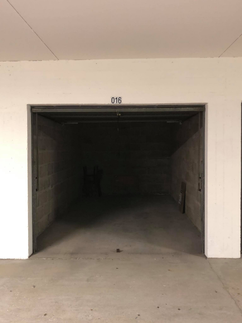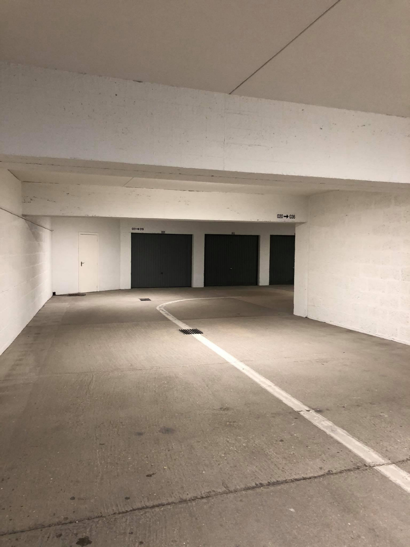 Afgesloten garagebox onder het Europaplein te met automatische buitenpoort. Niveau -1. Beschikbaar vanaf 1/03/2021.