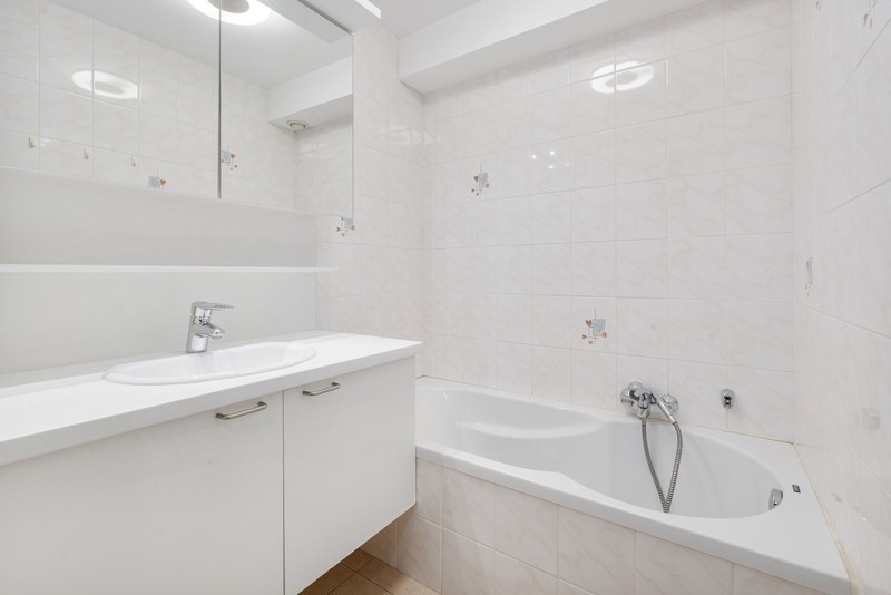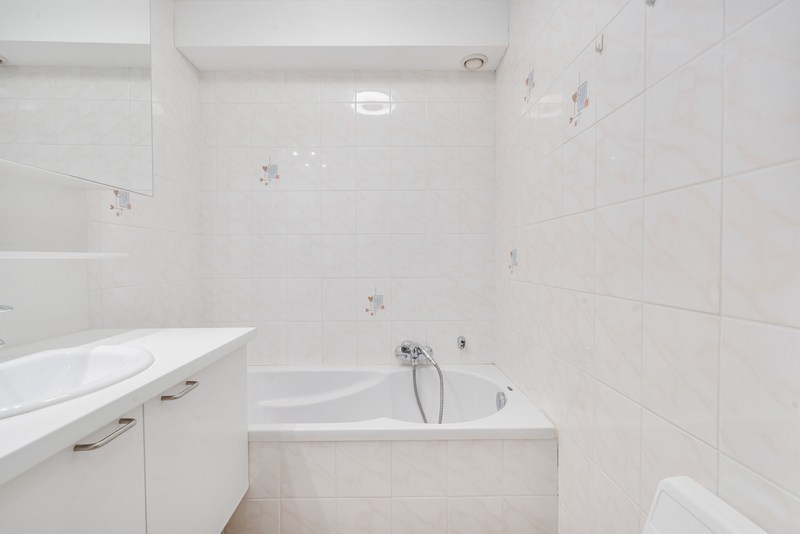 Badkamer met ligbad en lavabo. Apart toilet en aparte berging met plaats voor een wasmachine en droogkast. Er is nog een aparte berging in de kelder aanwezig.
