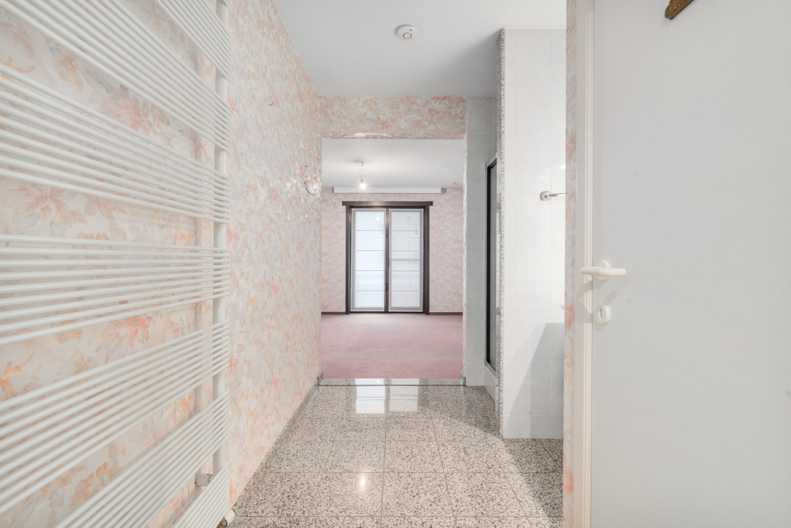 Indeling : ruime woonkamer met open keuken, brede inkomhall met toegang tot de 3 grote slaapkamers. Er zijn 2 badkamers en 2 toiletten. Aparte berging.