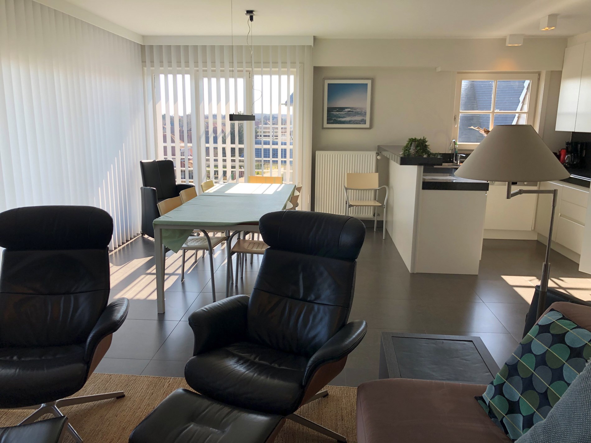 Modern en zongericht Nieuwbouwappartement met 2 slaapkamers waarvan 1 met dubbel bed en 1 met 2 x 1P stapelbedden, open keuken met vaatwasmachine en combi-oven, ruime living met flat screen, digibox en DVD-speler, hoekterras met tuinmeublilair. Badkamer met ligbad en douche, 2 wastafels, ruime berging en apart toilet. Garage inbegrepen. Huisdieren zijn NIET toegelaten. Er is internetaansluiting.