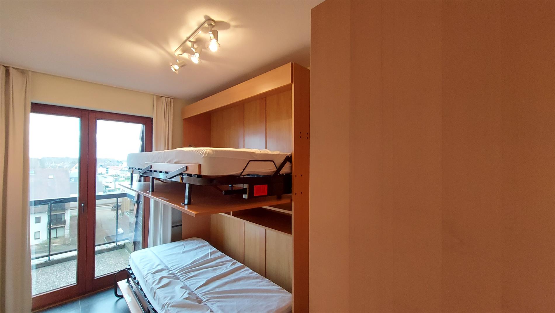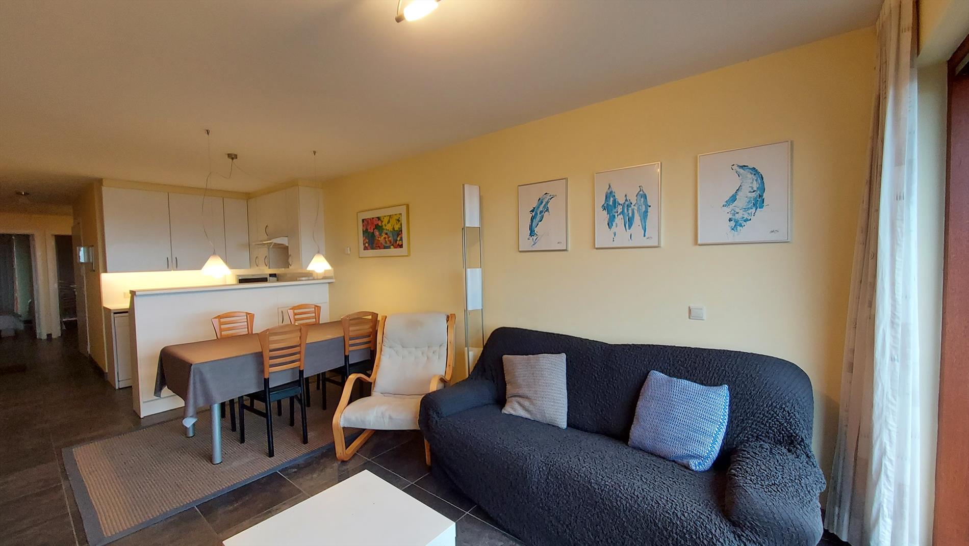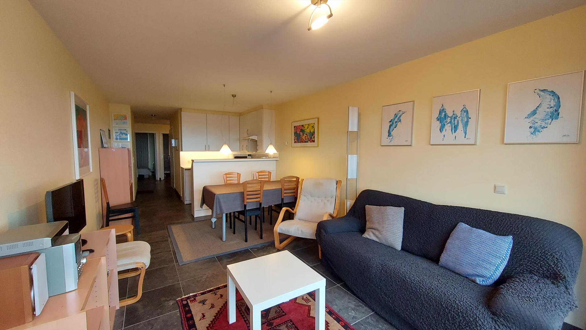 Modern apartment with panoramic view at the sea and the dunes: living room with spacious terrace, colour TV with digibox, open kitchen with microwave, bathroom with shower, washbasin and toilet, 1 bedroom with double bed, 1 bedroom with bunk bed (2x1P) and direct access to the sunny terrace. Sleeping area with single bed. Electric heating. 6th floor with elevator. Bicycle storage and underground garage included. PETS AND SMOKERS NOT ALLOWED!