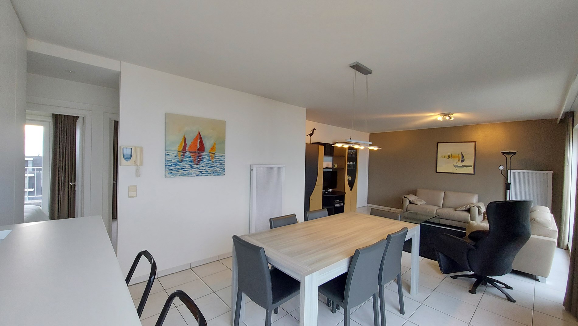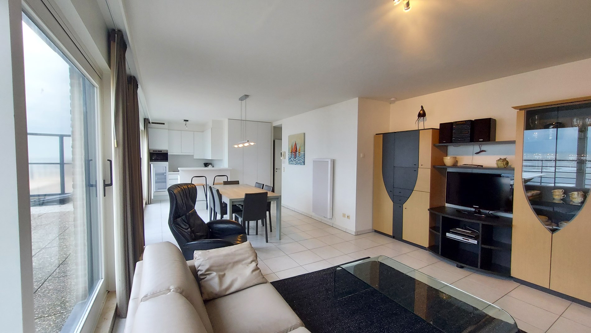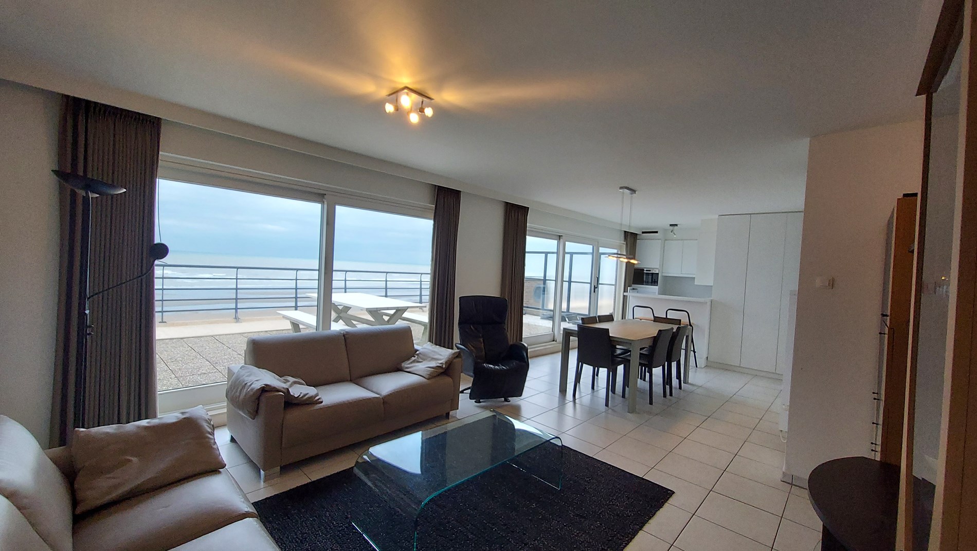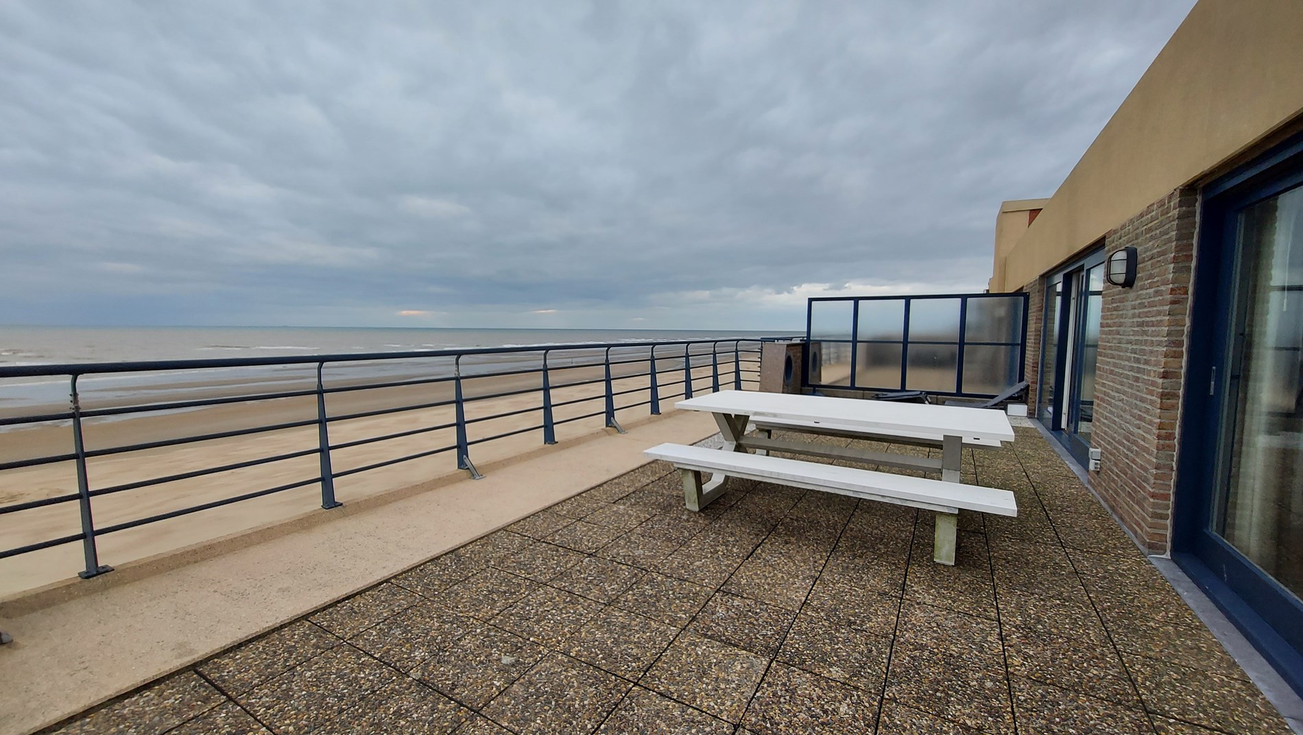 Beautiful penthouse located on the sea front : living with very large terrace with garden furniture, flat screen tv with digibox , FREE WIFI . American kitchen with dishwasher and microwave , bathroom with shower, separate toilet, 2 bedrooms, one with double bed, one with bunk beds, Sun terrace at the back. 7th floor . Communal bike shed. Pets not allowed. Garage under zeedijk included
