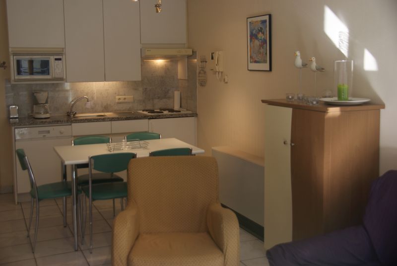 Modern groundfloor apartment at about 50m from sea with 1 bedroom and sleeping area: 1 double bed + 2x1P bunk beds, living room with flat screen, terrace, equipped open kitchen with dishwasher and microwave oven, bathroom with shower, toilet and sink. Electric heating at night rate. Elevator. Inner parking included. Pets not allowed. Shared bicycle storage. FREE WIFI!
