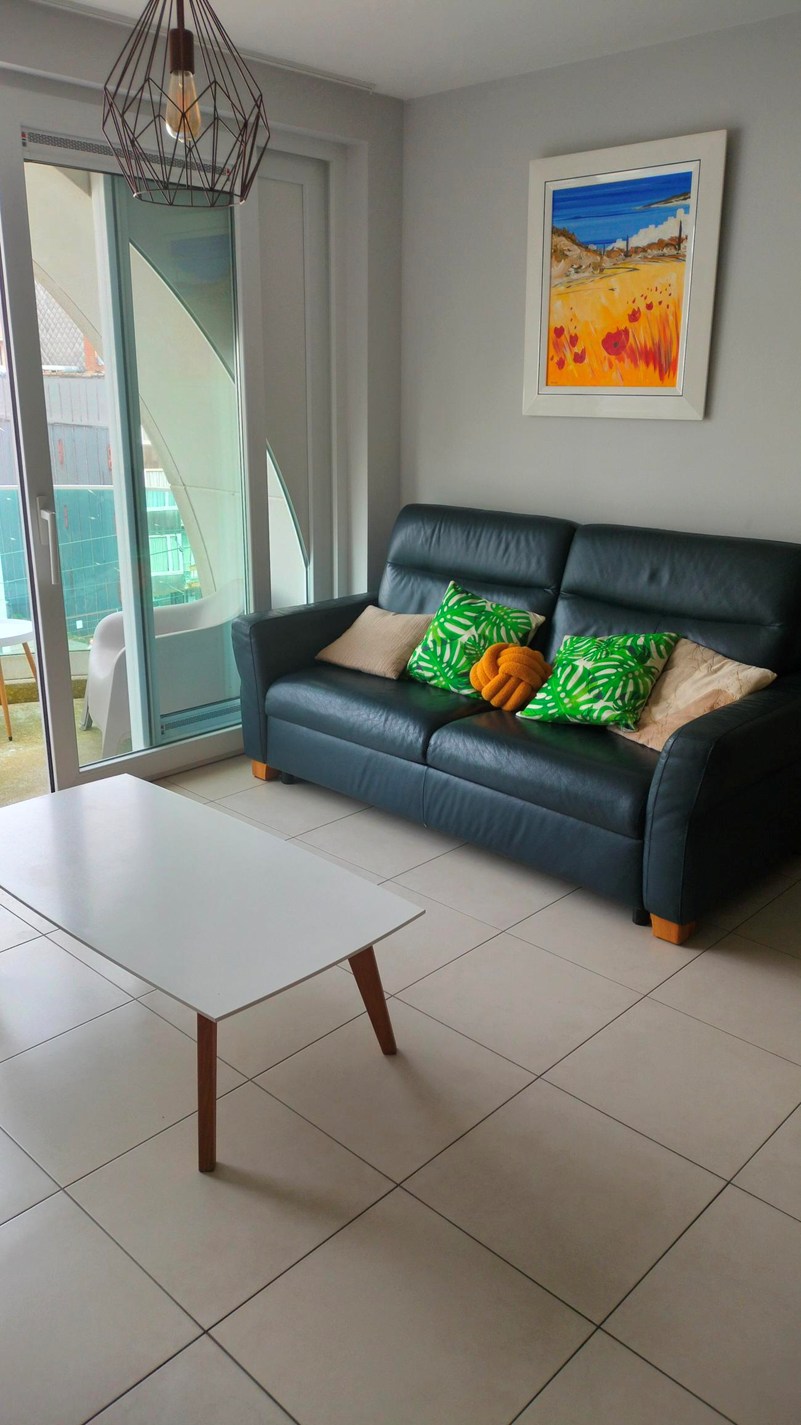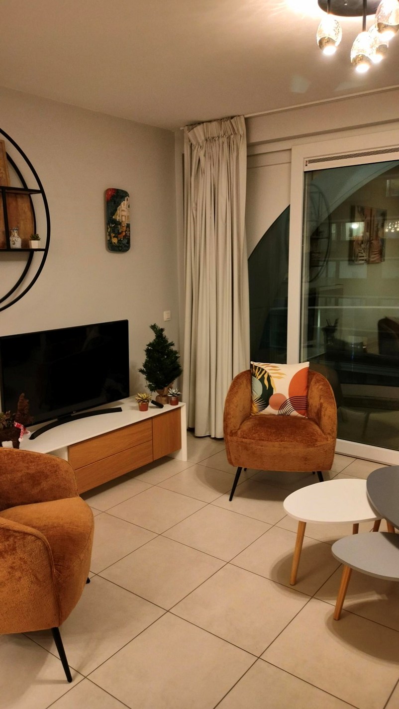 Beautiful new built apartment with all comfort. Spacious living room with terrace, 2 persons sofa bed, flat-screen TV, digibox. Open kitchen with microwave, dishwasher, vitro-ceramic hob. 2 Bedrooms with double beds. Bathroom with shower and double sink. Separate toilet. Separate storage room. FREE WIFI! NO pets allowed.