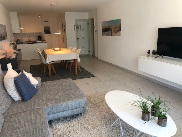 Beautiful new 2 bedroom apartment located close to the beach - and the centre. from Koksijde. Spacious living room with terrace, flat screen TV, Belgacom TV and WIFI. Open kitchen with dishwasher, vitro-ceramic hob and a combi-oven. 2 bedrooms, 1 with double bed and 1 with double bed (2 X1P) Bathroom with walk-in shower and double washbasin. Separate toilet and separate storage room. Pets are NOT allowed. Indoor parking included on -1