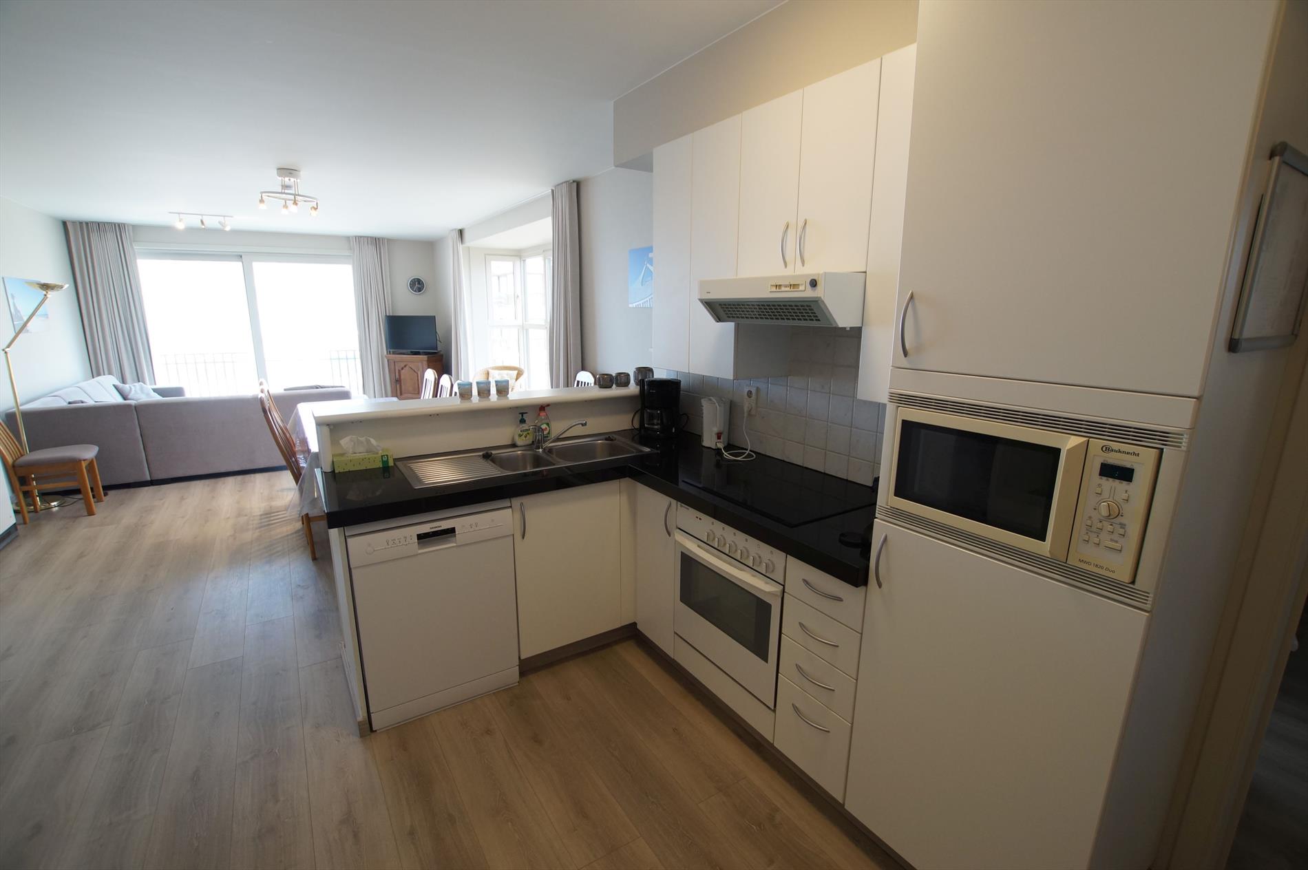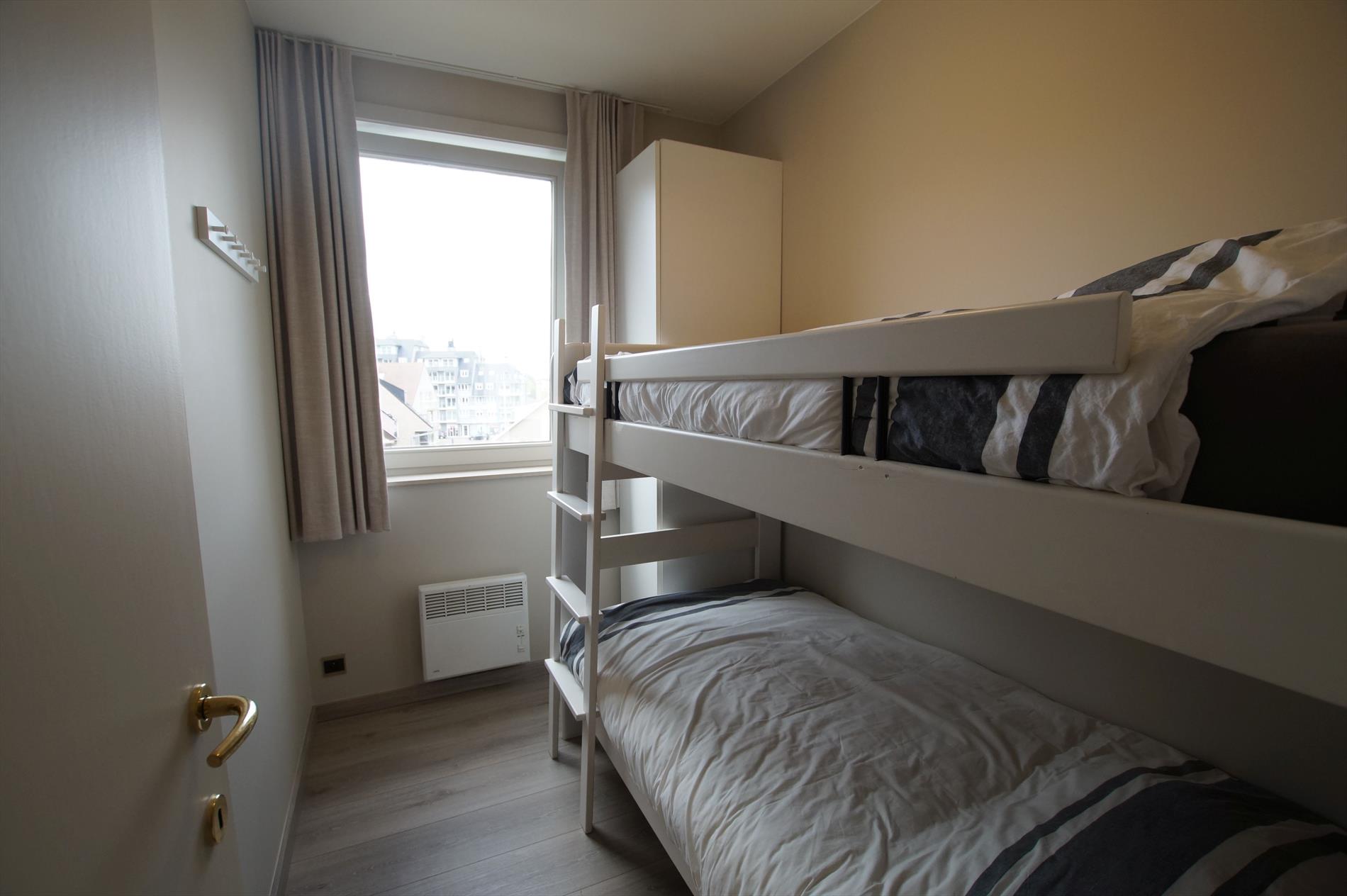 Very nice recent apartment with unique sea view; 3 bedrooms: 2x2P beds, 2x1P bunk beds, sunny living room with flat screen TV + Telenet with card and hi-fi, kitchen with oven, microwave and dishwasher, separate toilet, bathroom with shower and sink. Closed garage and communal bicycle storage. Electric heating (night rate). 2nd floor with elevator. No pets allowed.