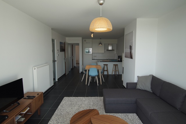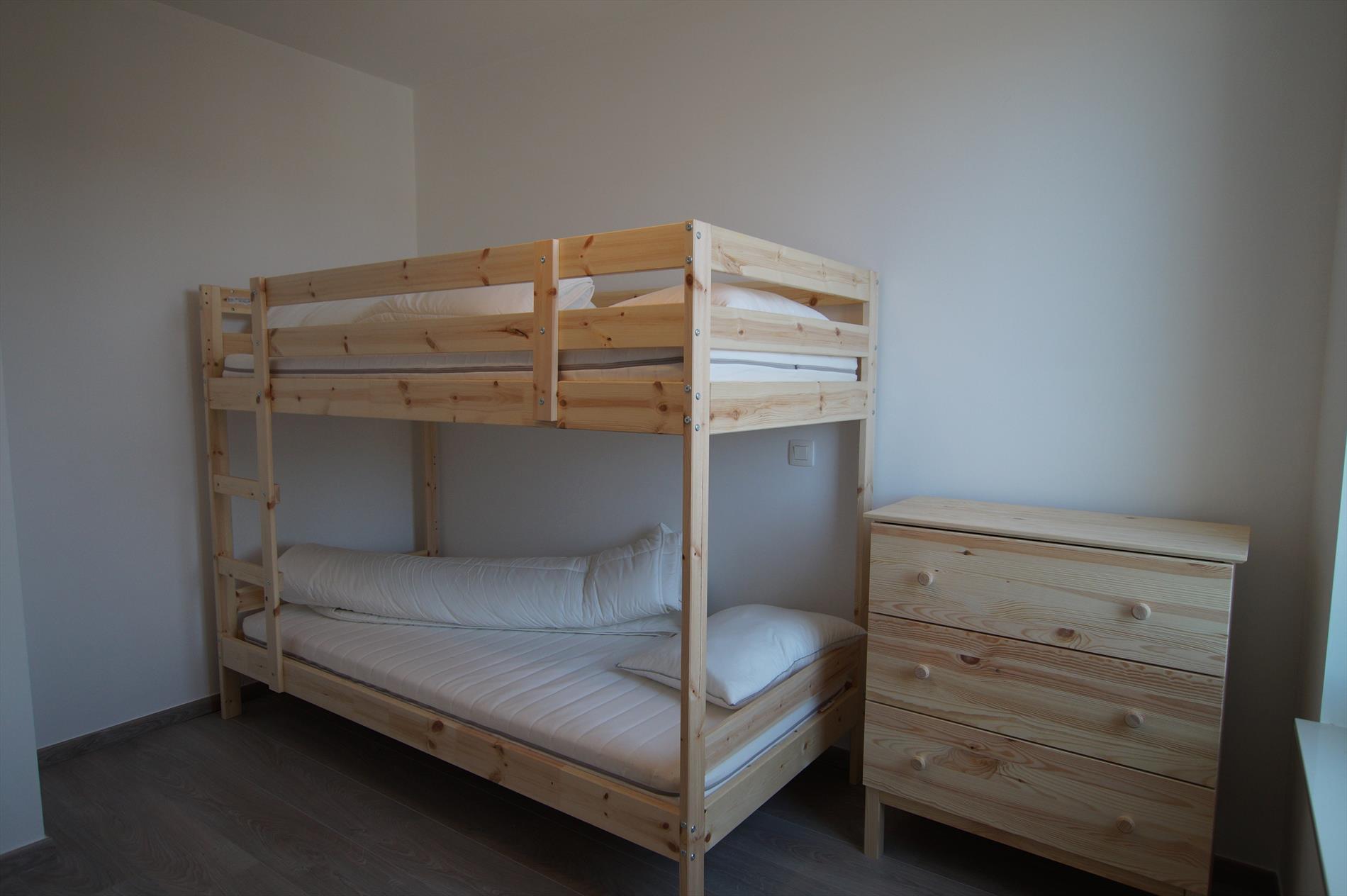 Recent apartment with beautiful sun terrace located in the center of Koksijde and close to the sea. Layout: Entrance with separate toilet. Living room with 2P sofa bed, flat screen TV, digibox, Open equipped kitchen with dishwasher, combi-oven, ... Bathroom with walk-in shower and double washbasin. 1 bedroom with 2P bed and 1 bedroom with bunk beds for 2P. No pets allowed. Gas central heating. Free WIFI