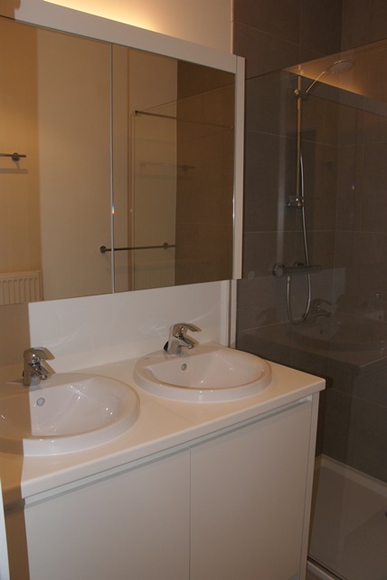 Luxurious new apartment on the seafront with 3 bedrooms: 1 with double bed, 1 bedroom with 2 single beds and 1 bedroom with bunk beds, spacious living room with panoramic frontal sea view, flat screen, FREE WIFI and digibox, fitted kitchen with dishwasher, and oven, separate toilet, bathroom with shower. Central heating . Common bicycle storage... Pets not allowed. Garage included in rental price! No smokers allowed!