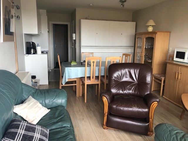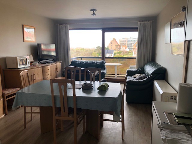 Nice apartment with splendid view on the sea and the dunes. Living with spacious terrace and flat screen tv with digibox, kitchenette with microwave oven, bathroom with shower, washbasin and toilet, sleeping area with double bed, 2x1P bunk bed in the living room. 3rd floor with elevator. No pets allowed. Communal bike shed. Underground parking included.