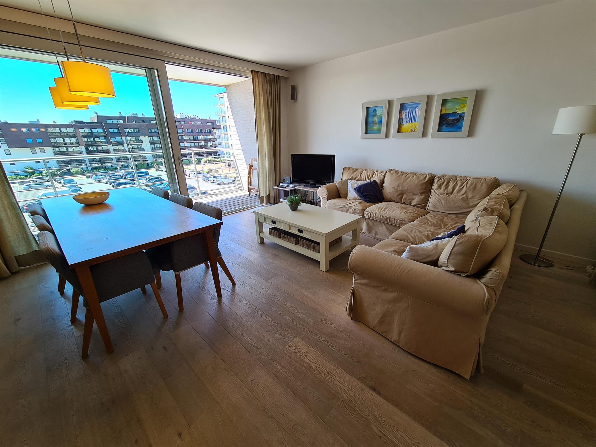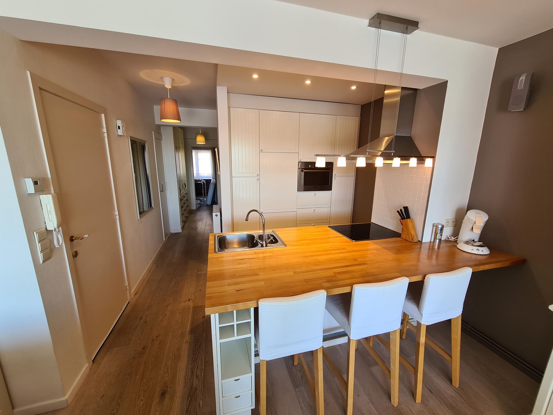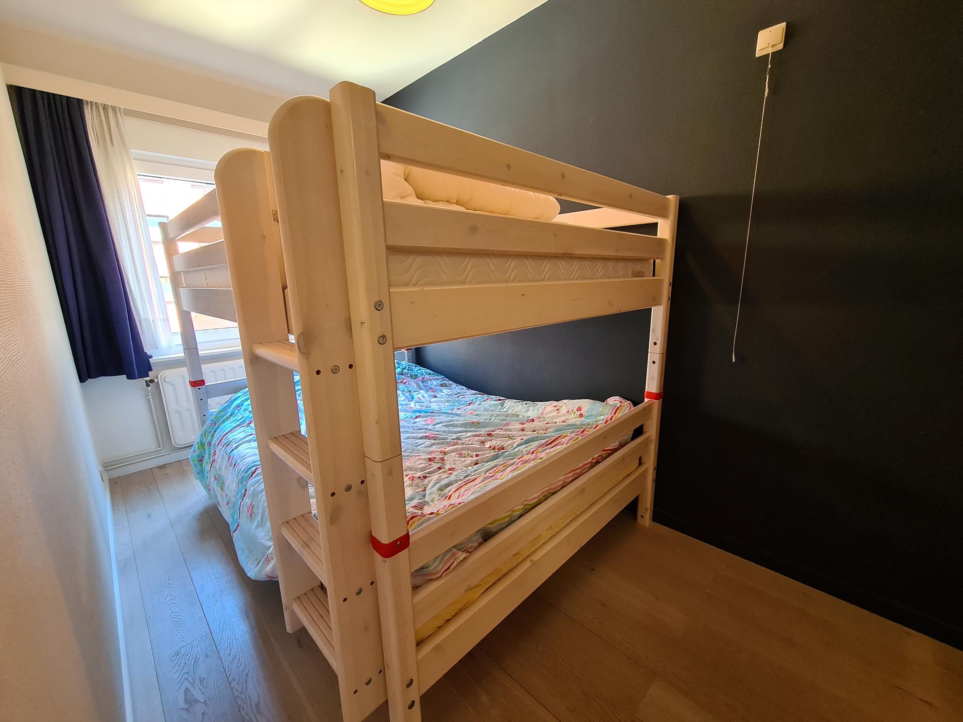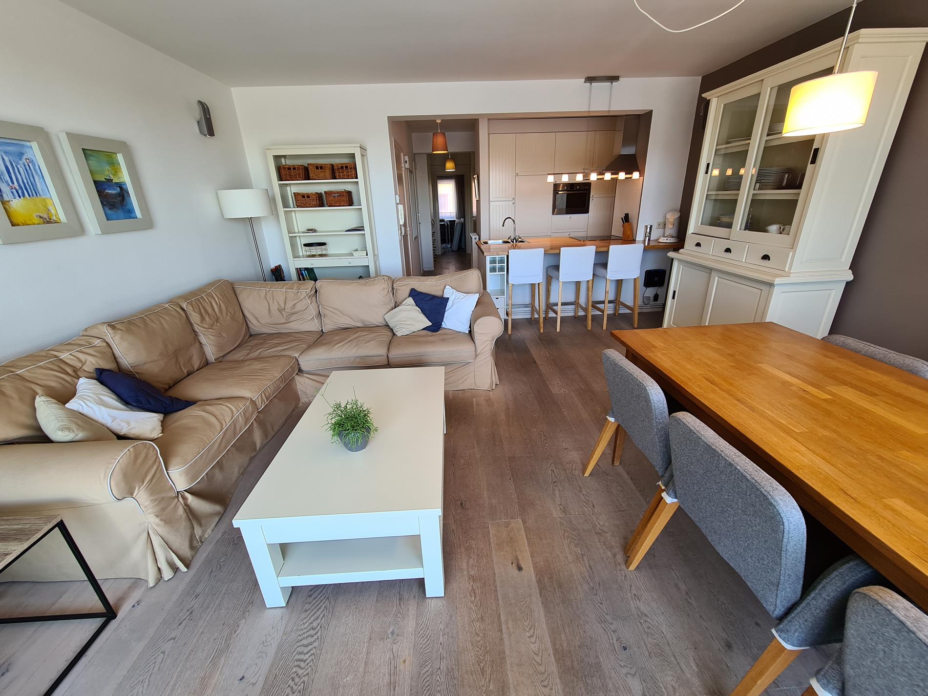Well maintained three bedroom apartment located around the corner from the Zeedijk with a panoramic view of the dunes! The apartment has three bedrooms, one with double bed, one with two bunk beds and one with one bunk bed. The open kitchen is equipped with all comforts. From the large terrace you can enjoy the sun from noon till night. The price includes a closed garage. No pets are allowed!
