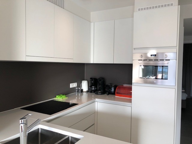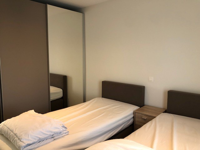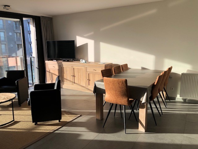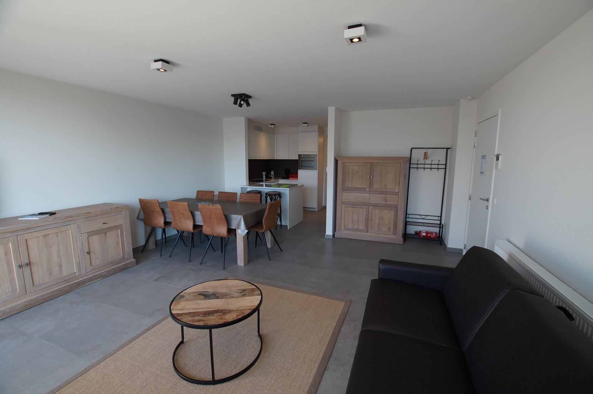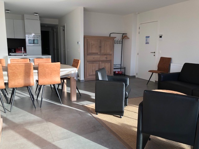 Beautiful, bright and luxuriously finished new flat with beautiful sea view. This spacious flat offers a spacious living room with open kitchen, flat-screen TV and free WIFI. 2 bedrooms, 1 with double bed and 1 with 2 single beds. A spacious bathroom with walk-in shower and washbasin. Separate toilet. From the living room you have access to the sunny terrace with magnificent sea view where you can enjoy the sun all day long. There is a communal bicycle shed on the ground floor. Possibility to rent a garage box.