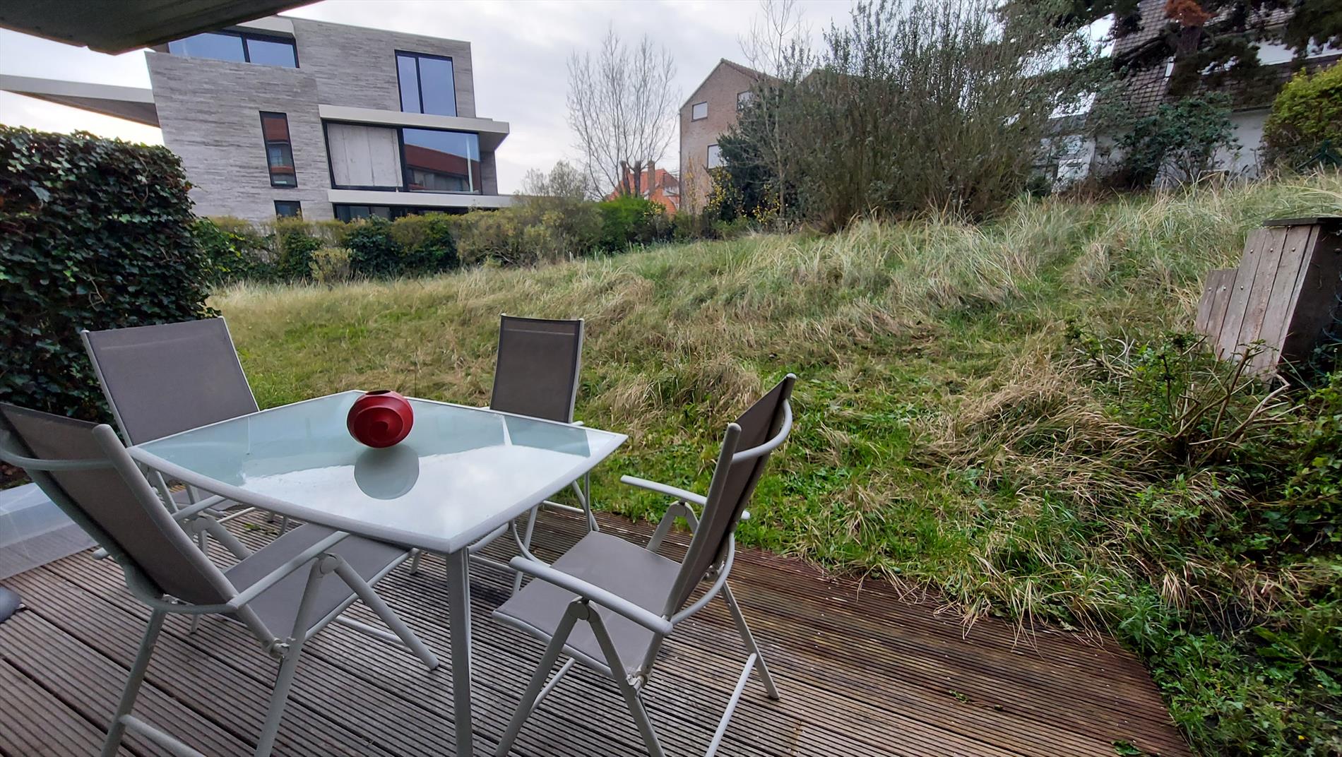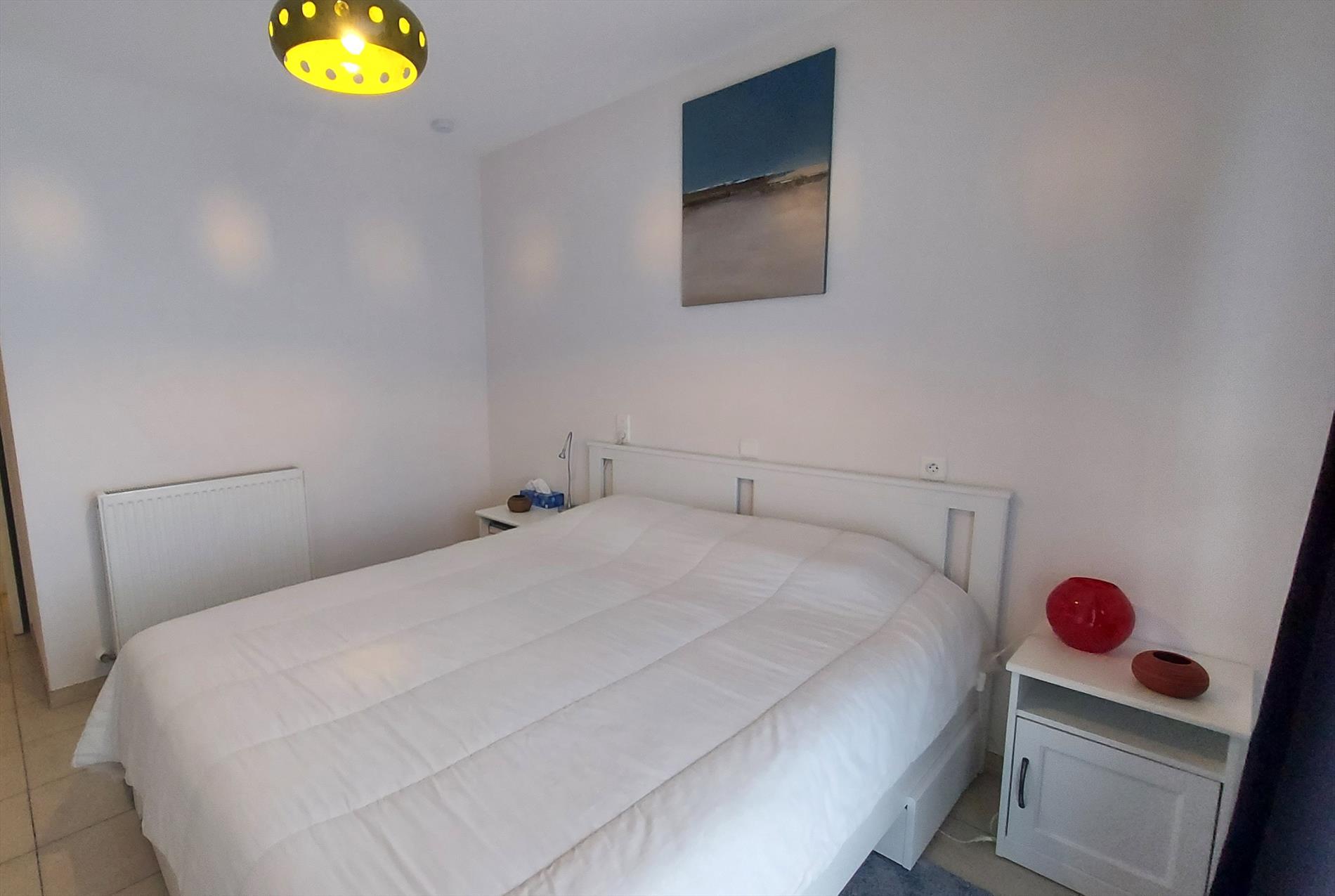 Villa flat close to the sea on the ground floor. The flat has a spacious living room with sun terrace and sofa bed, fully equipped open kitchen with combi-oven and dishwasher, separate storage room, hall, bathroom with washbasin and bathtub, separate toilet and bedroom with double bed, sleeping area with two bunk beds, terrace at the back. Shared bicycle storage is provided. Free Wifi and digital TV. Your little four-legged friend is also welcome!