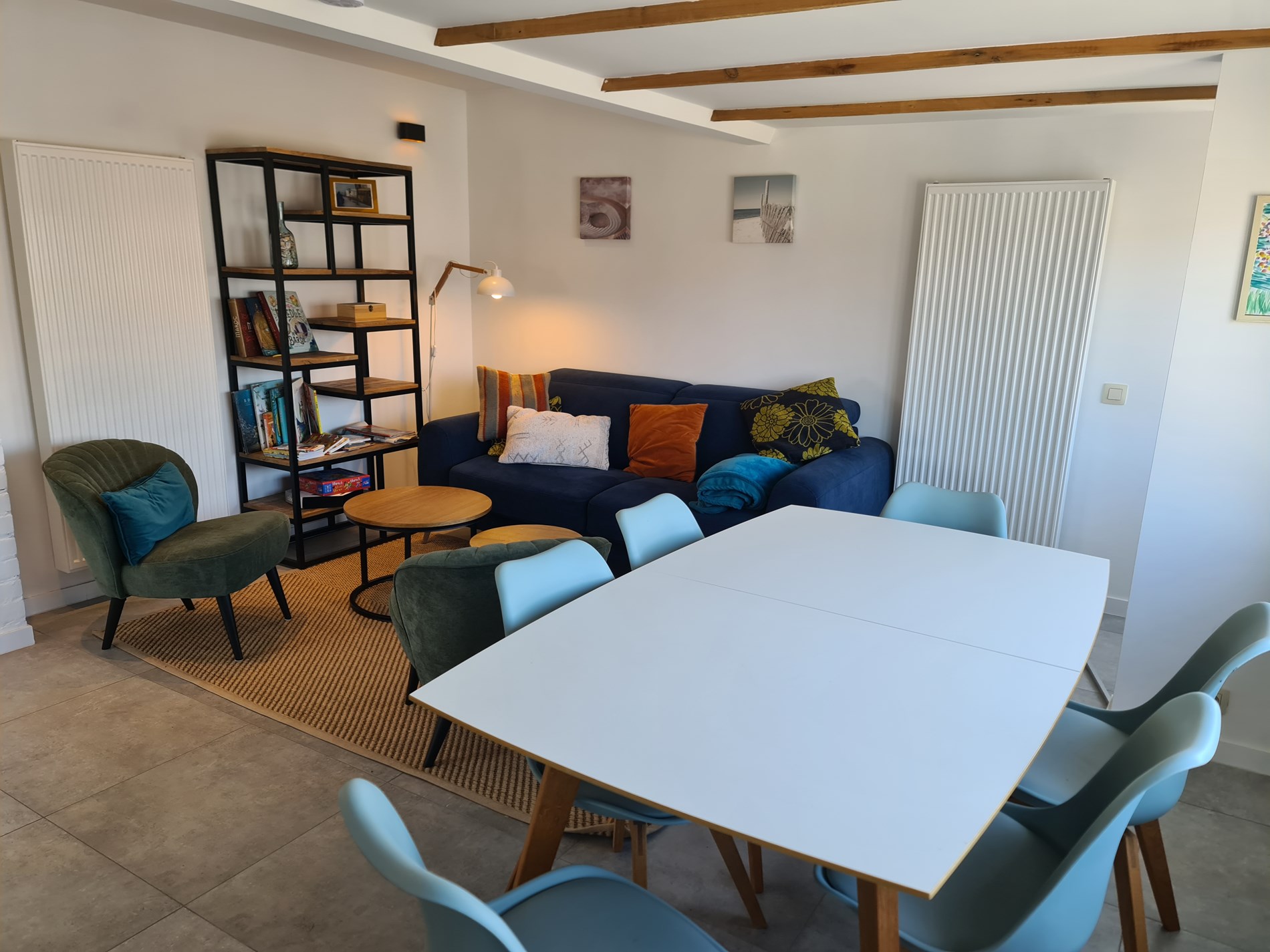 Renovated 2-bedroom appartment close to the sea. The flat is on the third floor of a building without lift . Layout : living room with open kitchen , 2 bedrooms of which 1 with double bed and 1 with 2 single beds , separate toilet and spacious bathroom with purchasing shower .