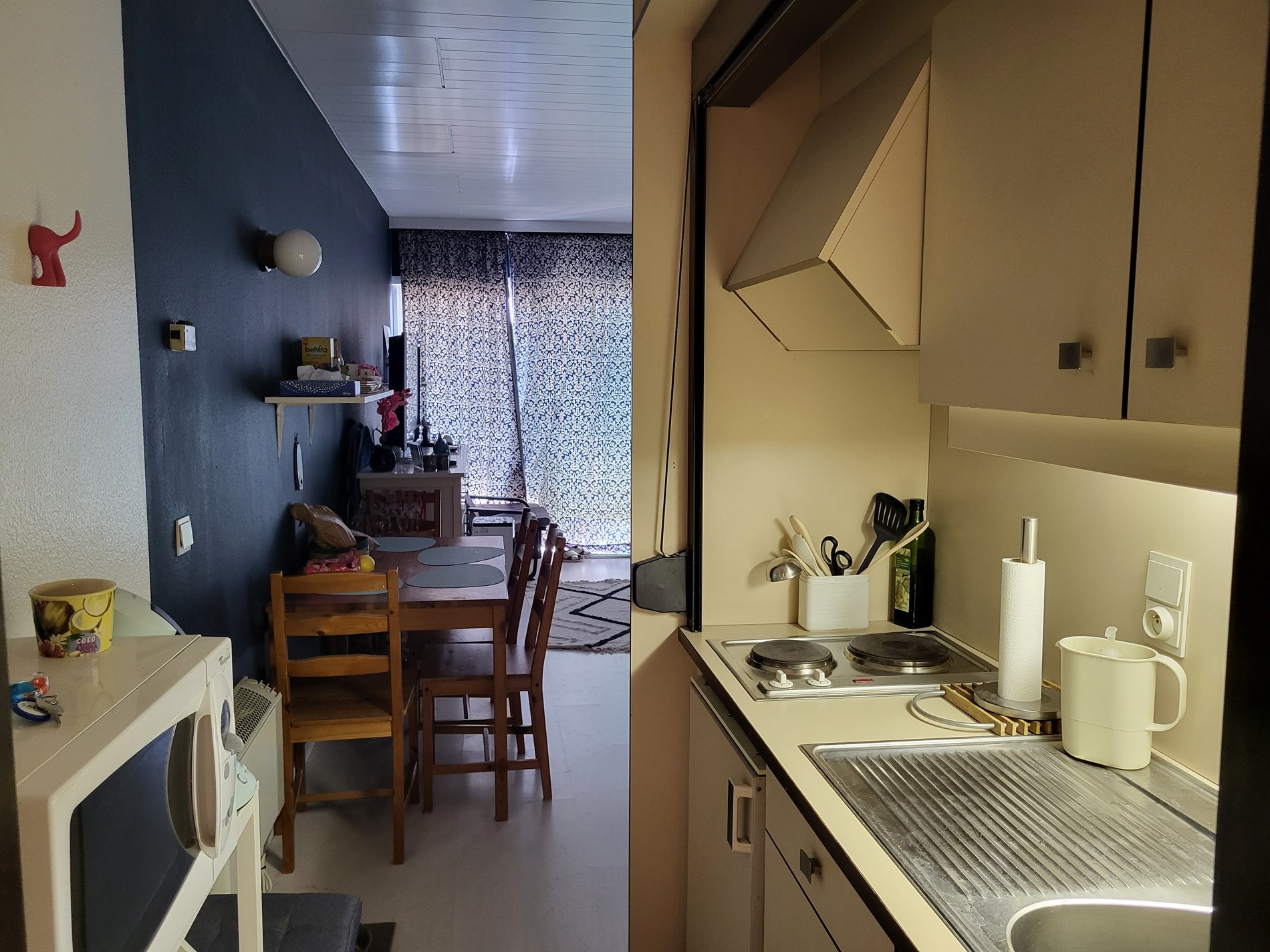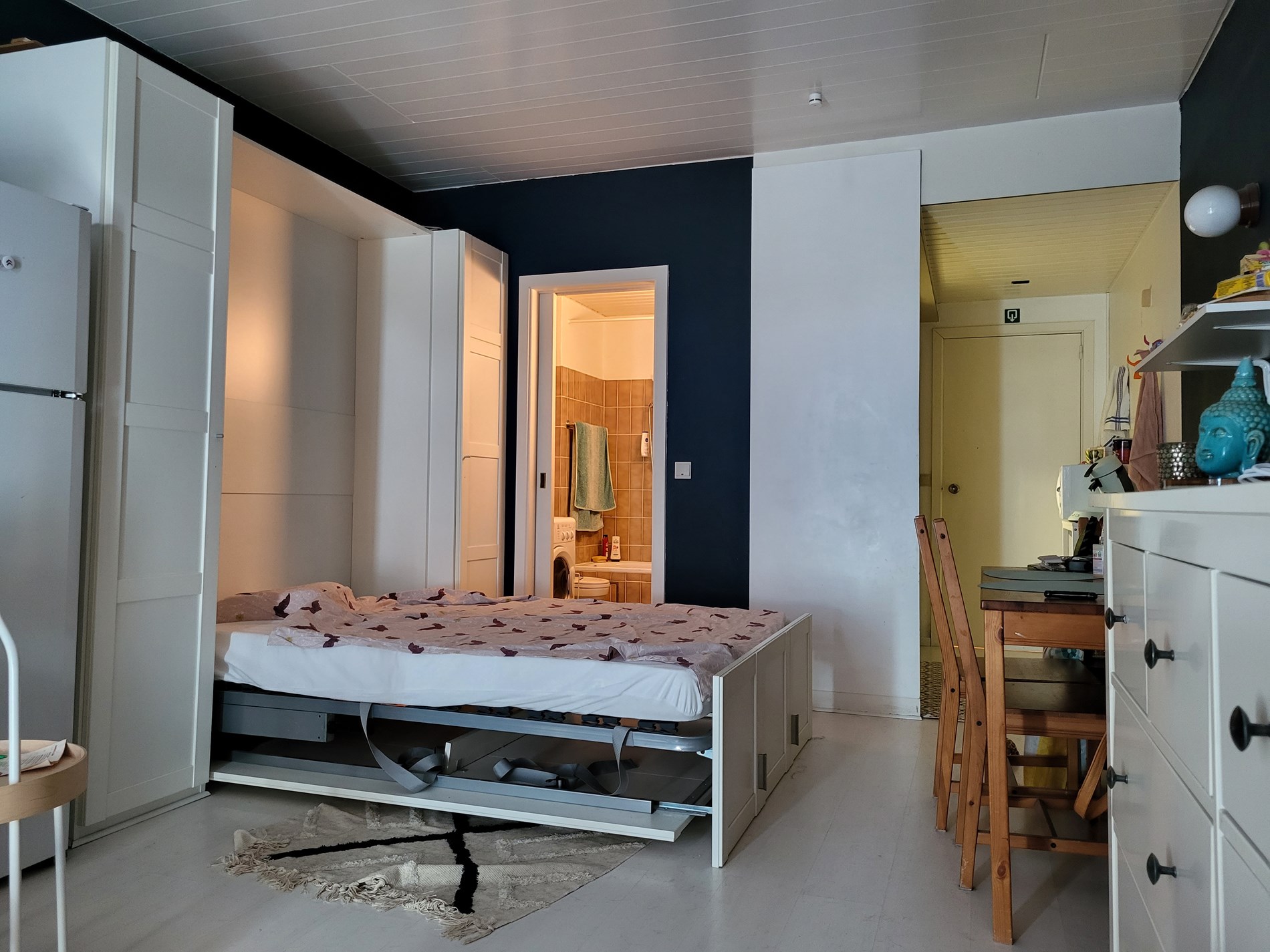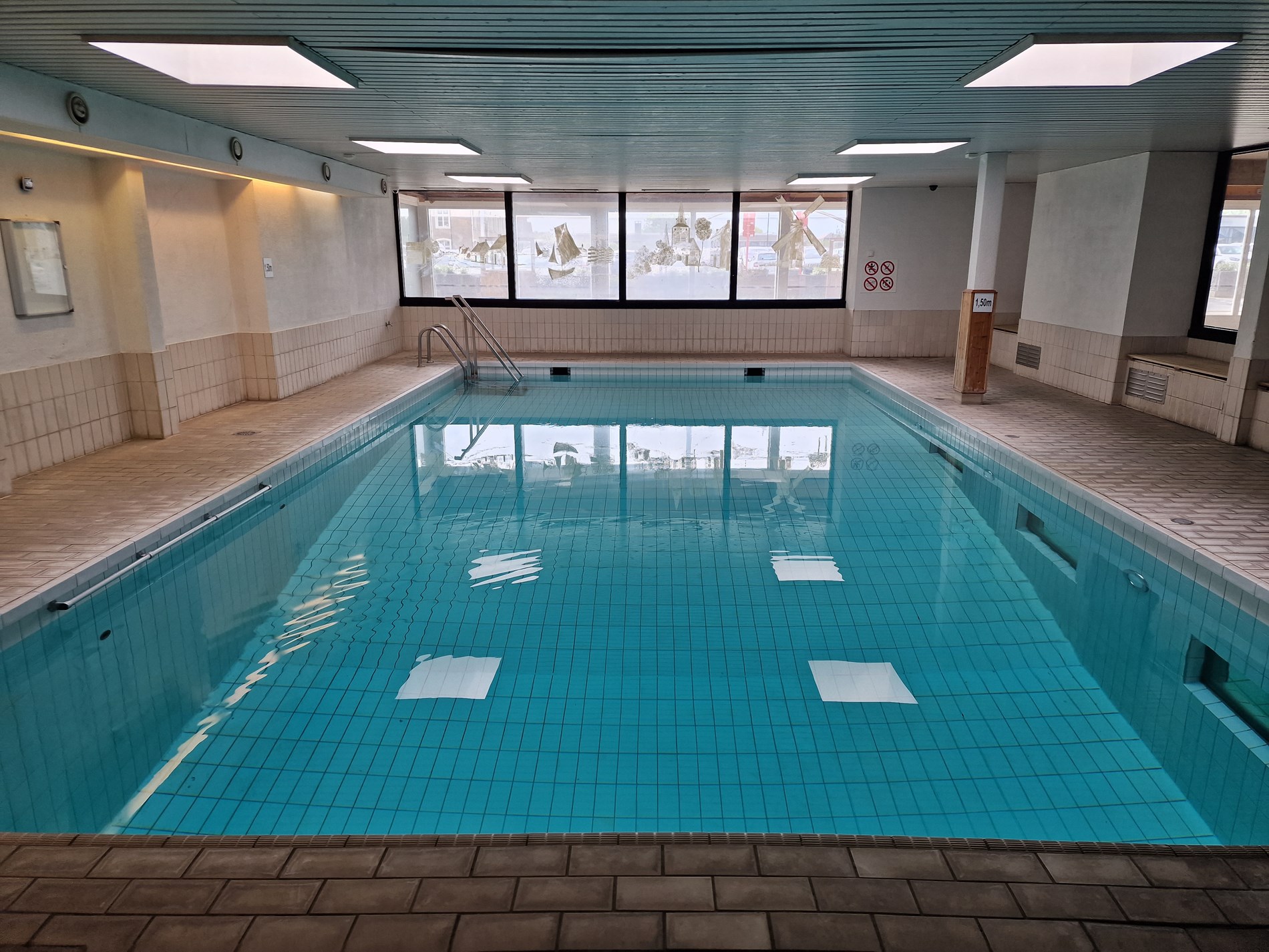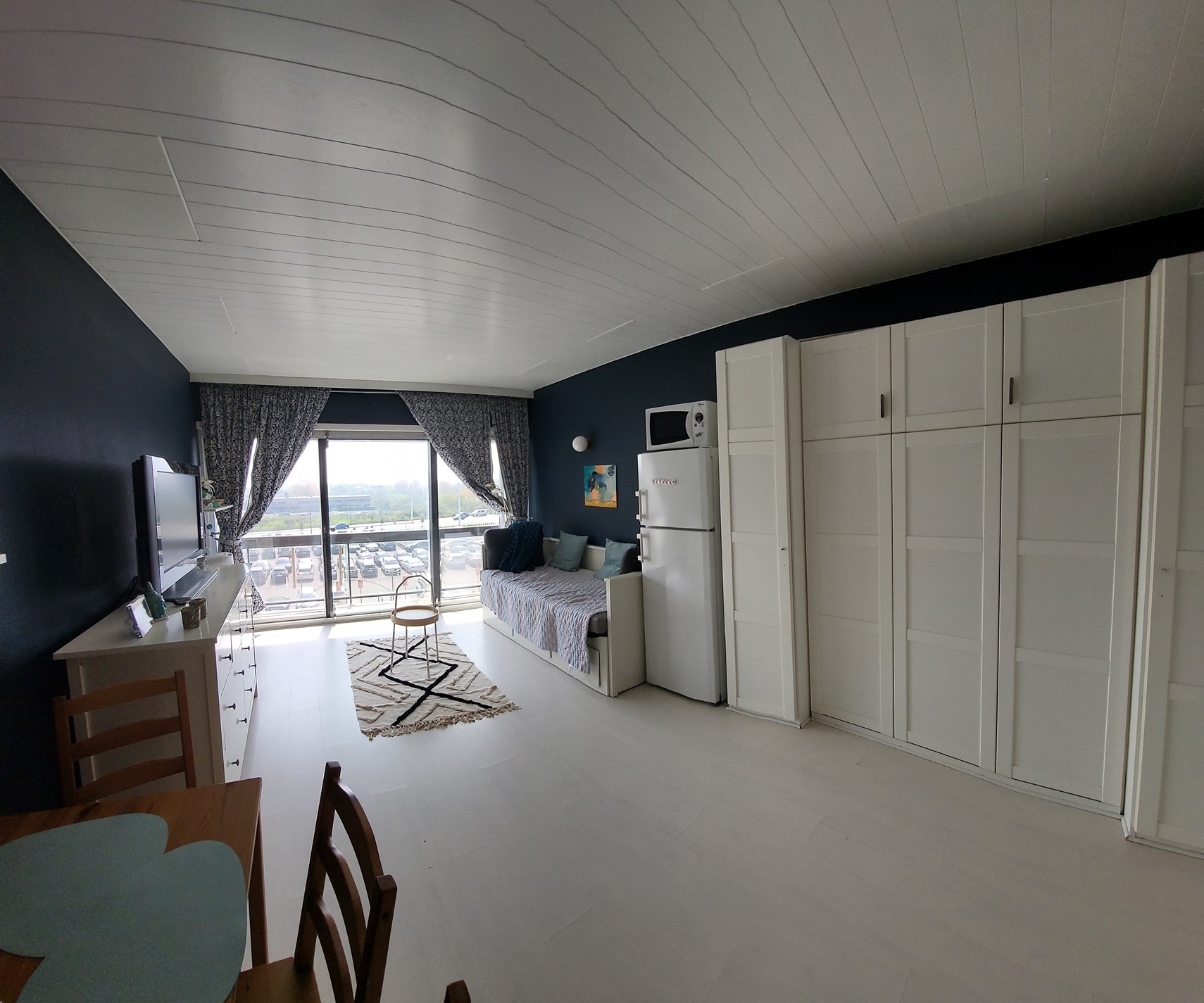 Cosy studio around the corner from the seafront in Oostduinkerke - Bad. Bright living room with open kitchen, bathroom with bath, toilet and single washbasin. Sofa bed for 2 persons and a built-in double bed in the living room.The residence has an indoor swimming pool.